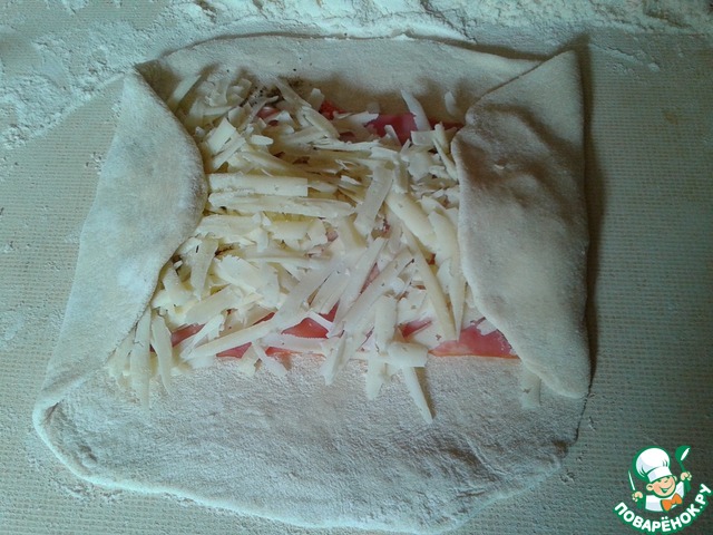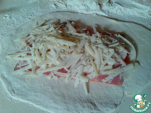 2-3 ст. л. натертого сыра. И начинаем заворачивать.