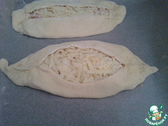 Боковушечки защипываем так, чтобы получились лодочки. Сверху смазываем молоком, выпекаем при 180-200 30-40 мин.