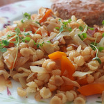Теплый капустный салат с макаронами