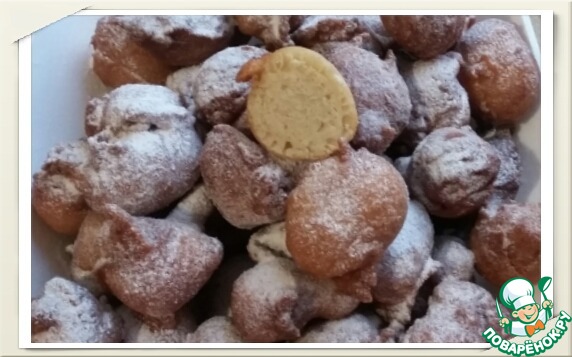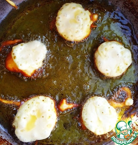 Теперь приступаем к жарке. Ставим сковороду на средний огонь. Наливаем достаточное количество подсолнечного масла (около сантиметра). И жарим наши пончики. (Я выкладываю их с помощью десертной ложки.)