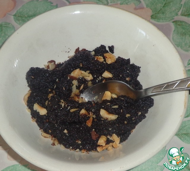 Мак измельчить. Сок соединяем с маком и сахаром.