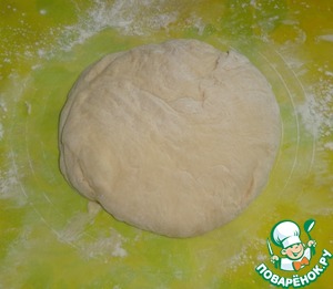 Присыпать стол мукой и выложить дрожжевое тесто.