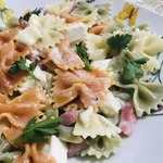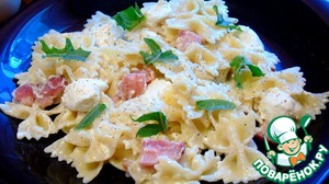 Фарфалле добавить к бекону, добавить сметану и перемешать.