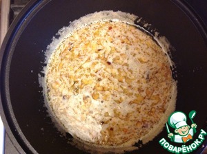 Высыпаем конфеты в сливочную смесь и нагреваем на небольшом огне до тех пор, пока не растают конфеты. На это уйдет примерно 20 минут. Когда наша масса становится однородной добавляем в нее орехи. Дадим смеси закипеть с орехами и выключим огонь. Можно накрыть крышкой и дать смеси постоять, ничего с ней без нашего внимания не случится. Вернемся к тесту