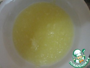Тоже самое проделываем и с лимоном. Добавляем 1,5-2 ст. л сахара (в зависимости от вкусовых предпочтений, если любите больше с кислинкой можно положить в лимонный сок меньше сахара),1ч. л. сливочного масла, 0,5 ст. л муки без горки.