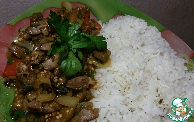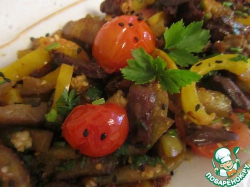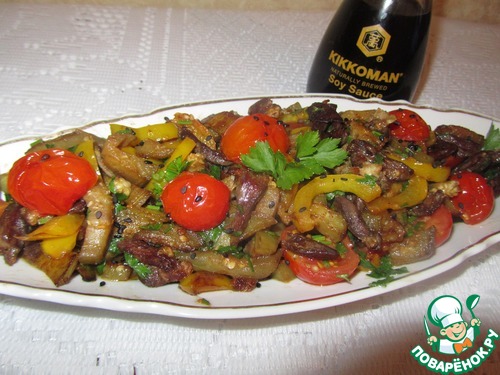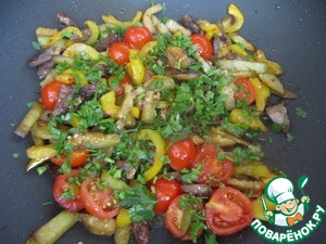 Рецепт «Теплый салат из сердечек с овощами»: