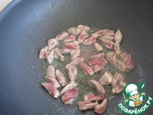 На сковороде раскалить оливковое масло, и быстро обжарить сердечки, в течении 1 минуты.