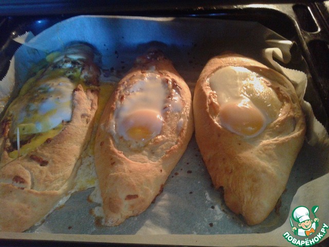 За 7-10 минут до готовности в лодочки разбиваем по 1 яйцу, аккуратно, чтобы сохранился желток. Приятного аппетита!!!