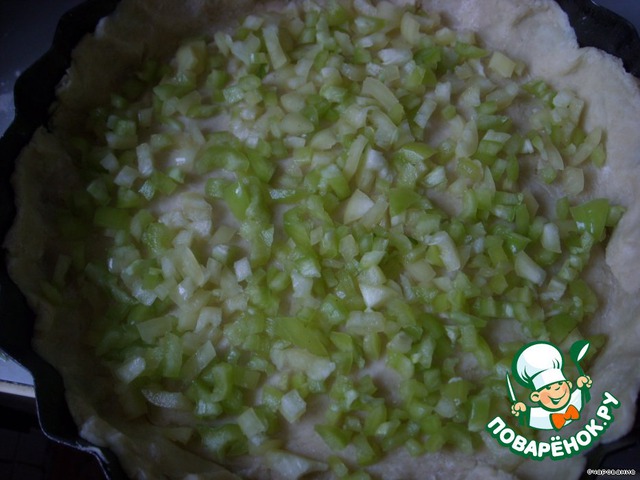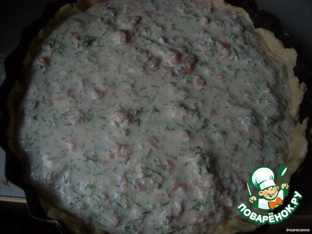 Основа этого пирога - песочное тесто, а начинка рыбная с творожным суфле.