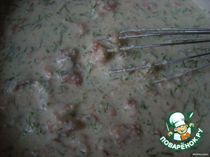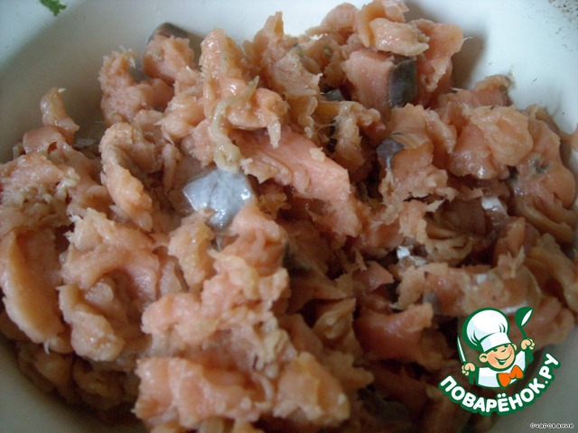 В творожную смесь добавить рыбку, посолить, поперчить.
