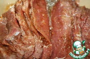 Хорошо поливаем наше мясо маринадом. Чтобы попал маринад во все разрезы... Оставляем мариноваться на 6-8 часов, можно и больше... За это время, мясо нужно несколько раз перевернуть... Чтобы оно замариновалось со всех сторон...