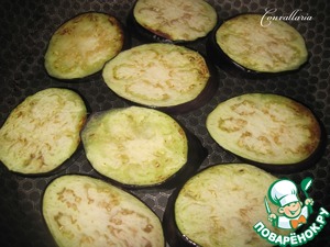 • Баклажаны нарезать кружочками и обжарить на сковороде, слегка смазанной растительным маслом, до золотистости.