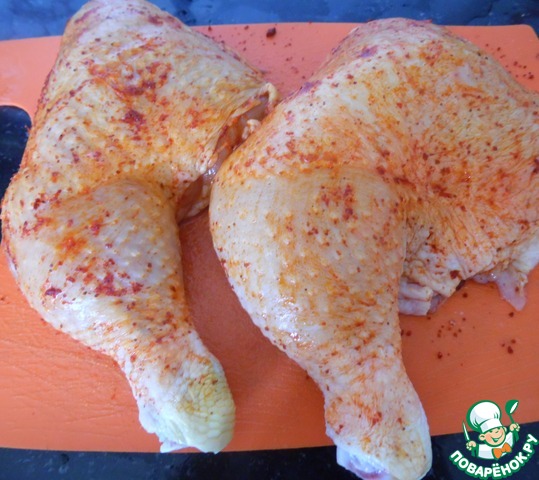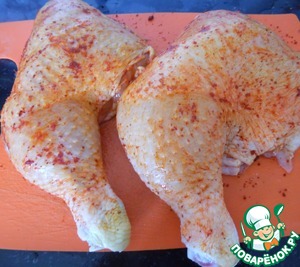 . Куриные окорочка посолить, поперчить, посыпать паприку, и обжарить до готовности.