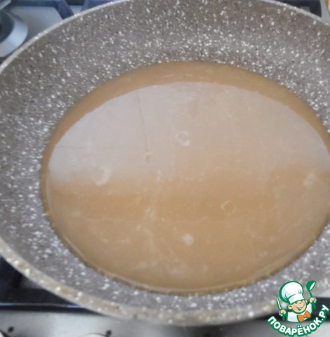 Вылить сок на сковороду и уварить на половину