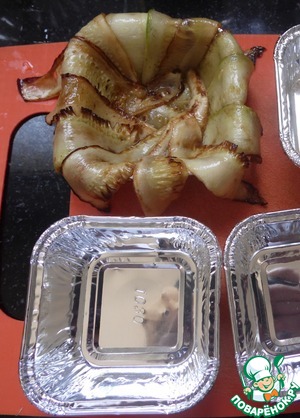 Начнём с кабачков: помыть, нарезать на очень тонкие полоски,