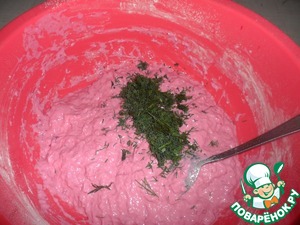 Мелко режем укроп и добавляем в тесто, хорошо размешиваем.