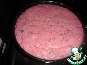 Затем добавляем тёртую на мелкой тёрке свёклу, перемешиваем.