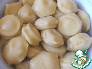 Рецепт «Пельмени с куриным фаршем на морковном соке»: