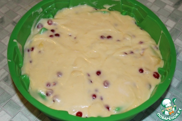 Форму смазать маслом или выстелить пекарской бумагой. Я пользовалась силиконовой формой (спасибо Аллочке1976 за подарок). На дно наливаю немного теста, затем насыпаю немного ягод, и чередую слои.