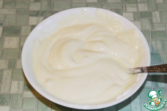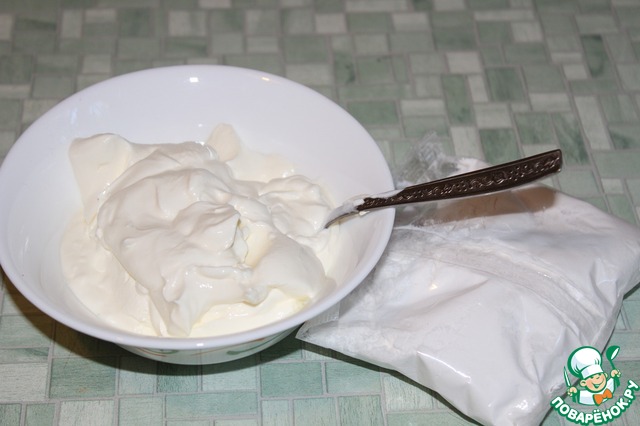 В качестве обмазки использовала проверенный годами крем: сметана и сахарная пудра.