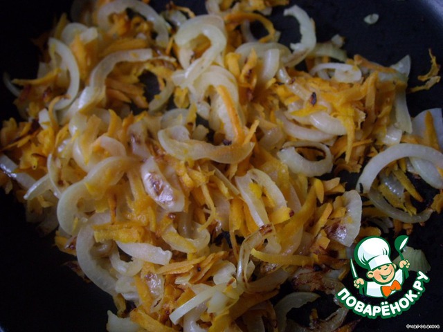 Грибы отварить и обжарить с луком и морковью.