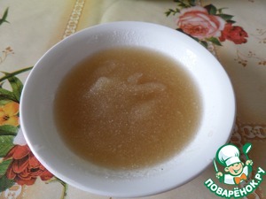 В чашку выкладываем желатин и заливаем 0,5 ст. холодной воды.