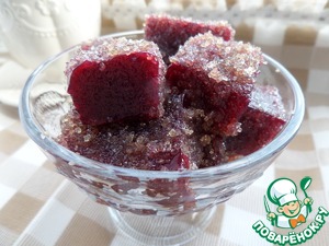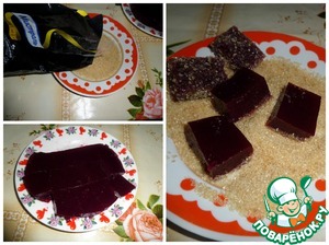 Вынимаем из формы застывший мармелад, нарезаем на кусочки и обваливаем в сахаре.