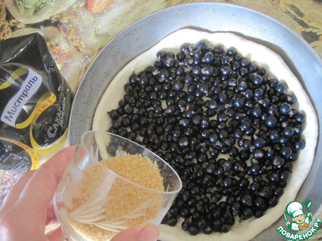 Кладем черную смородину и посыпаем сахаром (у меня ТМ Мистраль)