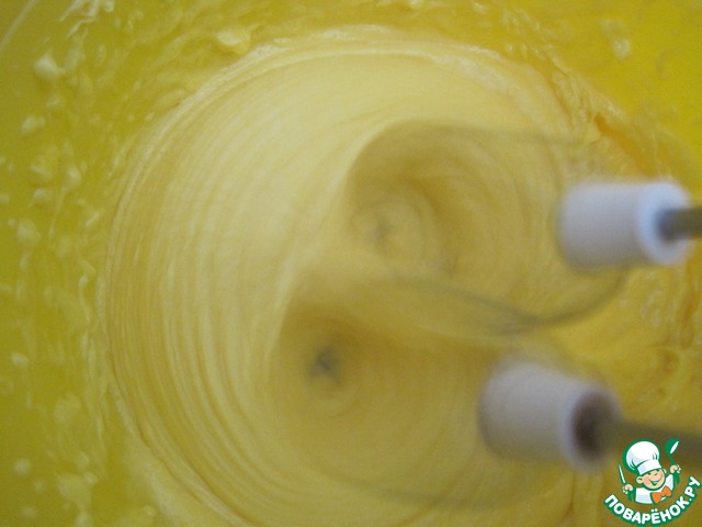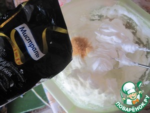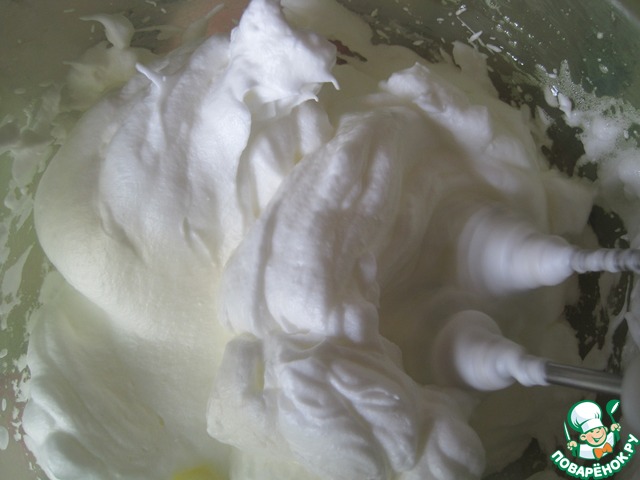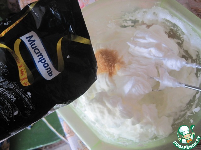 Всыпаем постепенно сахар и продолжаем взбивать 10 мин.