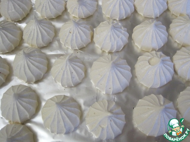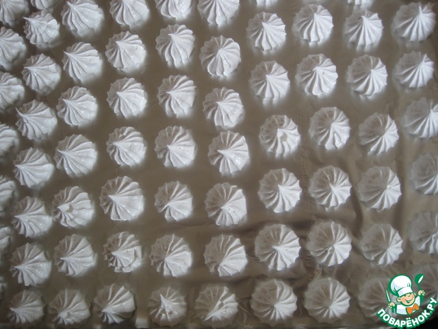 Отсаживаем из кондитерского мешка. Я отсадила на фольгу, и безе не прилипало