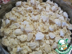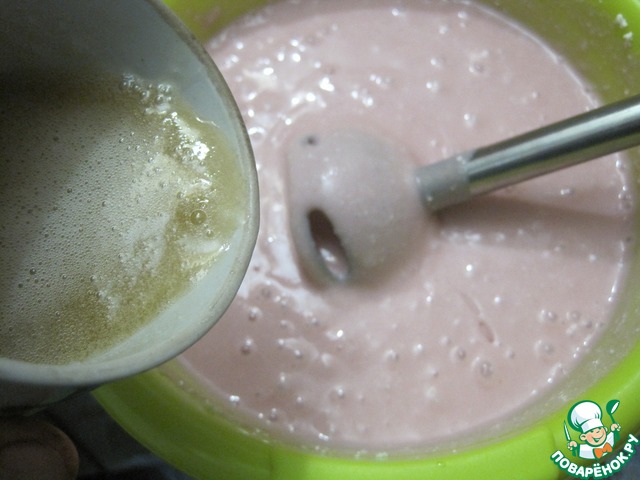 Добавляем разрыхлитель и муку, замешиваем тесто