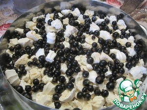 В середину отсаживаем масляный крем, украшаем черной смородиной