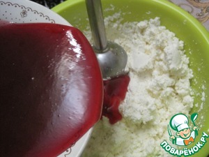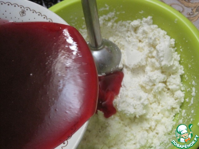 Готовим суфле. Из малины выжимаем сок, добавляем сахар, перемешиваем до растворения.