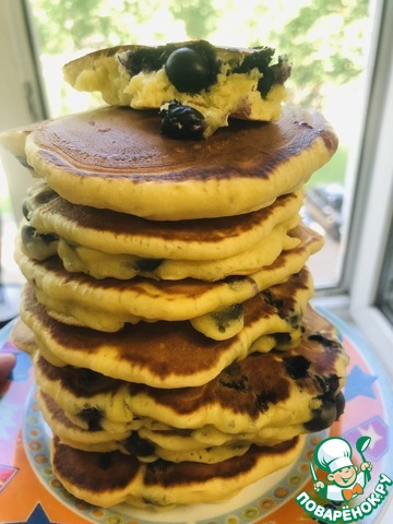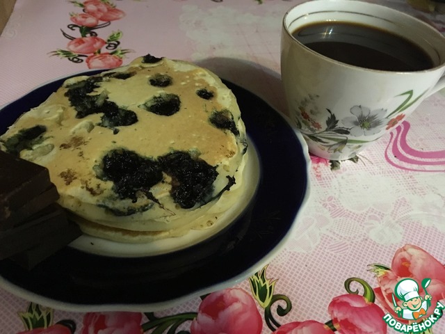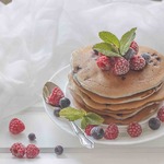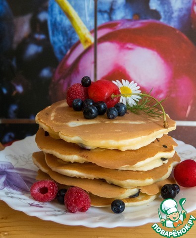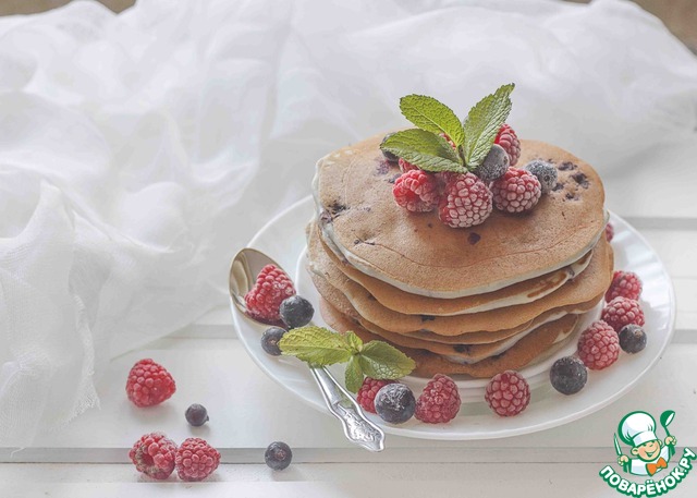 Рецепт «Черничные панкейки с клубникой и мятой»: