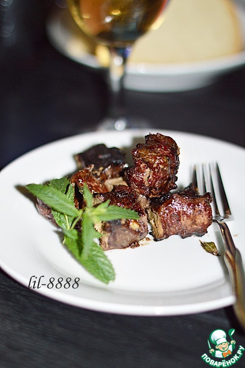 Если вы любите печень, то обязательно попробуйте приготовить шашлык в лимонном маринаде с мятой. Я брала печень барашка.