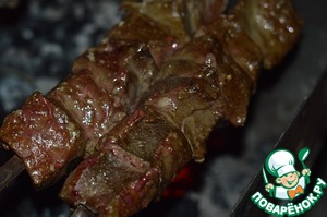 3. Накрыть пленкой и убрать в холодильник минимум на час. Затем печень нанизать на шампура и готовить на мангале до готовности. Но можно приготовить и в духовке.