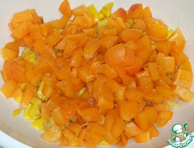 Маленькие, жёлтенькие патиссончики больше сладкие на вкус, чем солёные. Их нарезала на 4 части и переложила в глубокую миску.