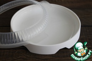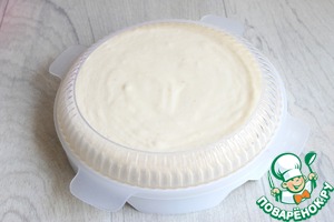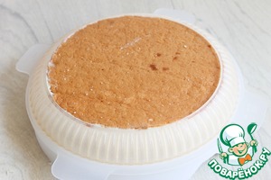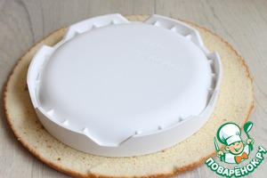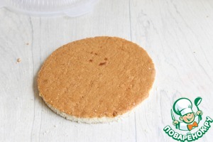 Отложим его пока в сторону. У меня магазинный бисквит, разрезанный на 3 части. Я взяла только одну.