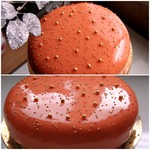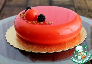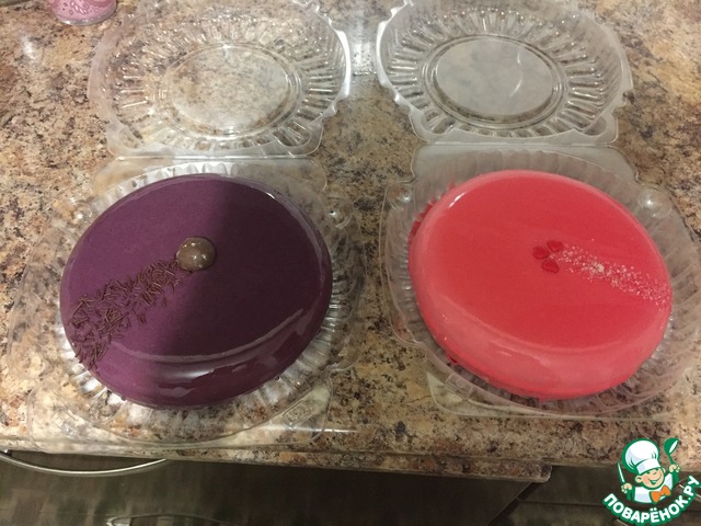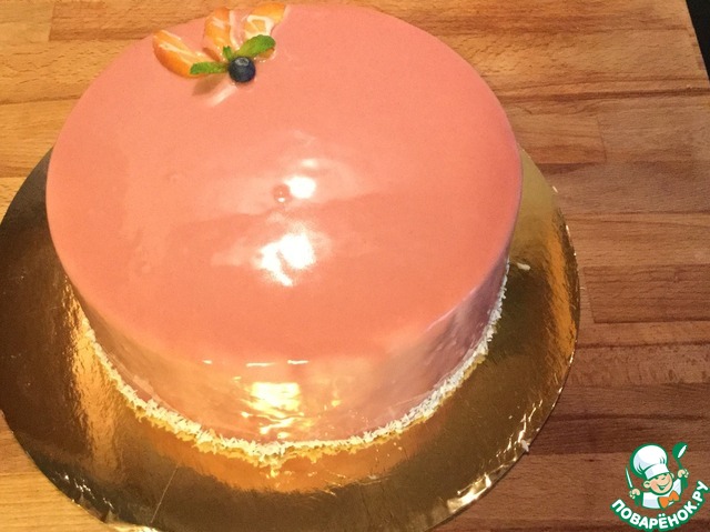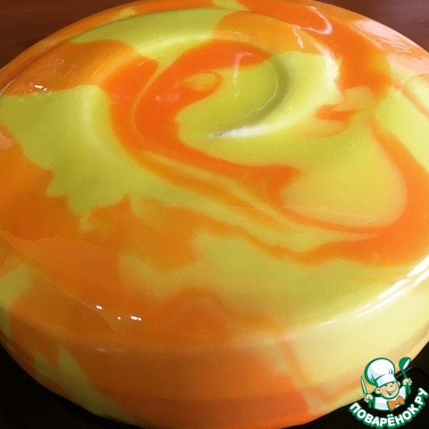А теперь о моем опыте. Есть еще над чем работать, чтобы навык отточить. Возможно, у меня градусник не совсем точный (инфракрасный), возможно, я что-то сделала не так, но глазурь при 35 градусах ложилась толстым слоем на мусс и покрыла его толстым слоем. Поверхность не была ровной, т.к. "волночки" глазури сразу схватывались. Ровнять спатулой не рискнула (нет еще навыка). Собрала излишки глазури, прогрела на водяной бане до 39 градусов и вновь полила торт. Да, да, слой, конечно, стал еще толще, но ровнее...