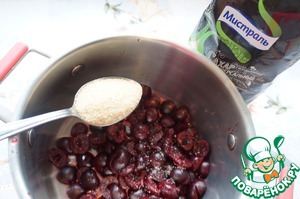 Взять немного выделившегося сока, смешать с крахмалом и вернуть в кастрюлю. Подержать еще пару минут на огне до загустения.