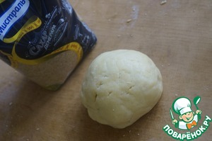 Начать замешивать тесто, подливая немного воды. Тесто должно быть гладким, не липнущим к рукам. Сформировать шарик, завернуть его в пищевую пленку и убрать в холодильник на 30 минут.