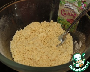 Соединить просеянную муку, сахар, нарезанное кусочками сливочное масло. Вымесить вилкой тесто - должна получиться песочная крошка. Убрать в холодильник на 30 мин.