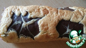 3. Противень бумагой, вылить белое тесто, на него ложкой темное и зубочисткой рисуем звездочки