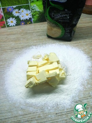 100 гр муки просеять, добавить к муке 1 ст. л сахара, ванилин и сливочное масло. Порубить ножом, потом замесить руками.