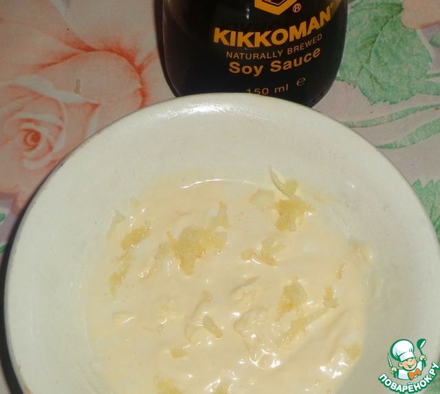 Смешиваем сметану, соевый соус и измельченный чеснок.