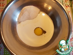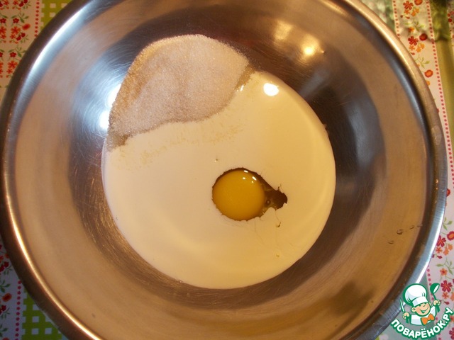 В другой миске смешать мелкий сахар ТМ Мистраль, яйцо и сливки.