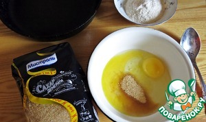 Отдельно смешиваем сахар, яйцо+желток, ванилин и муку. Я использую тростниковый нерафинированный сахар "Демерара" от ТМ "Мистраль". Он придает выпечке невероятный карамельный вкус, цвет и аромат.