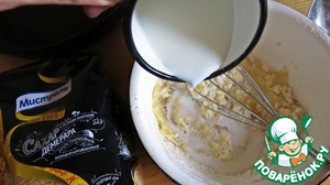 Затем вводим в тесто теплое молоко. Перемешиваем до однородности.