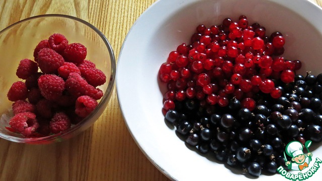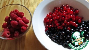 Начнем с подготовки ягод. Конечно, можно выбрать любой "микс", но ягод должно быть 300 г. Черную и красную смородину вымыть, очистить от веточек и обсушить на салфетке. Малину просто перебрать от листьев, веточек и прочего.