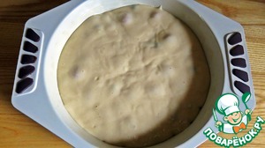 Сверху заливаем тестом и отправляем в разогретую до 180 градусов духовку на 40-45 мин.